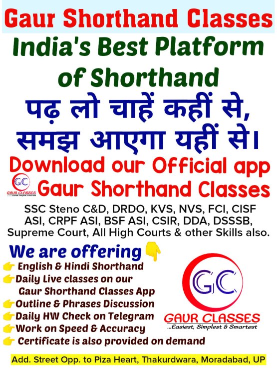 About us- India's best Platform of Shorthand with best Instructor of Thakurdwara. For learning Shorthand Download our Gaur Shorthand Classes App from playstore.